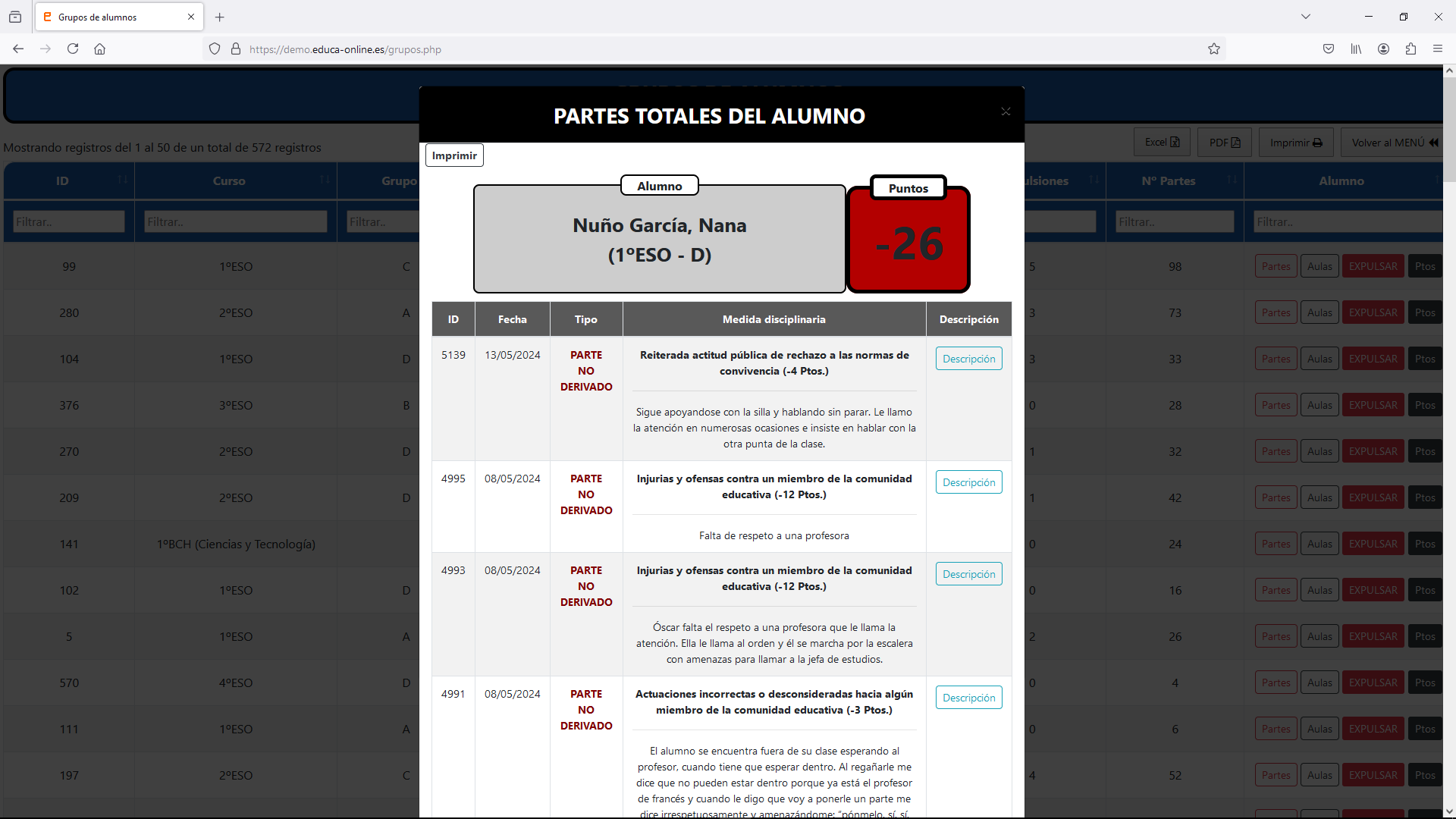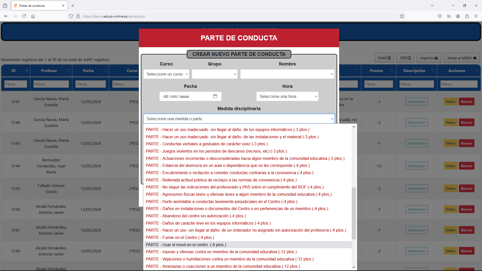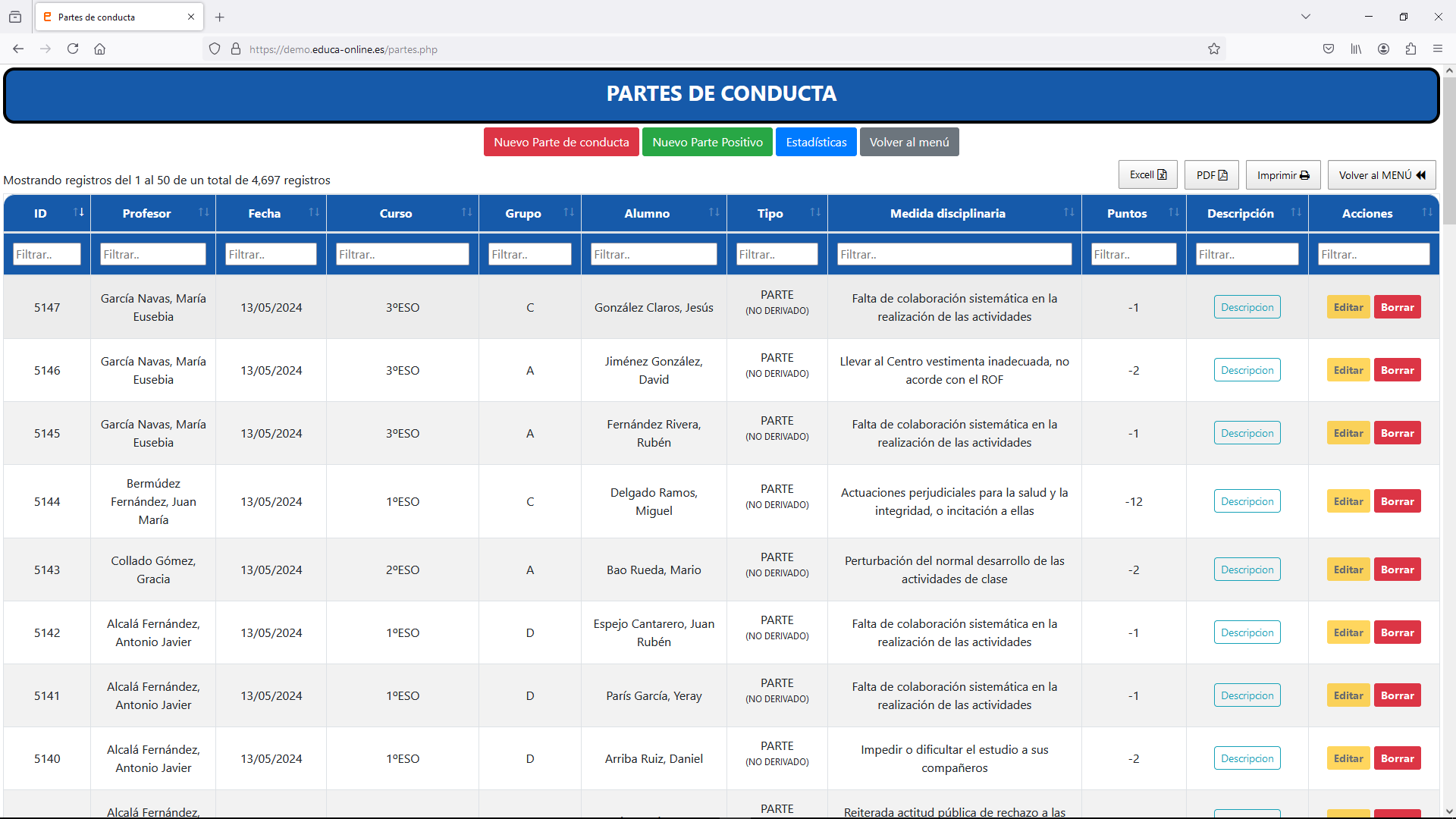 educa-online es una plataforma integral que permite a los centros escolares gestionar de manera automatizada el comportamiento de los estudiantes, facilitando tanto la identificación de conductas inapropiadas como el reconocimiento de comportamientos positivos. Nuestro objetivo es ayudar a los centros a mantener un ambiente de respeto, disciplina y desarrollo personal para el alumnado.